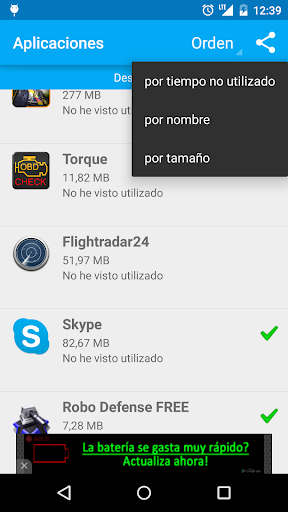 - Ordenar aplicaciones por tamaño descendiente