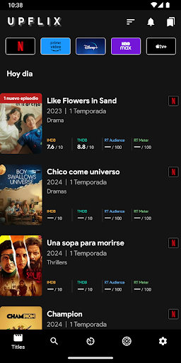 Mantente a la vanguardia en la era del streaming con Upflix, tu guía definitiva para películas y series en las principales plataformas de streaming. Si eres suscriptor de Netflix, Disney, Prime Video, HBO Max o Apple TV , ¡Upflix es perfecto para ti!