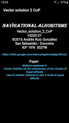 - Vector Solution for the intersection of two Circles of Equal Altitude. (Andrés Ruiz González. Journal of Navigation (2008), 61:355-365. The Royal Institute of Navigation).