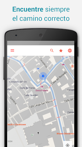El mapa y el contenido de las guías se almacenan en tu dispositivo para que los tengas siempre disponibles, incluso sin conexión a Internet. Todas las prestaciones, como búsqueda de direcciones, creación de reseñas y notas, e incluso la posición con GPS, funcionan también sin conexión. Todo funciona de forma rápida y fiable, aunque tengas un dispositivo solo con Wi-Fi o si quieres evitar los costes de roaming en el extranjero (como es lógico, necesitarás una conexión a Internet para descargar los datos).