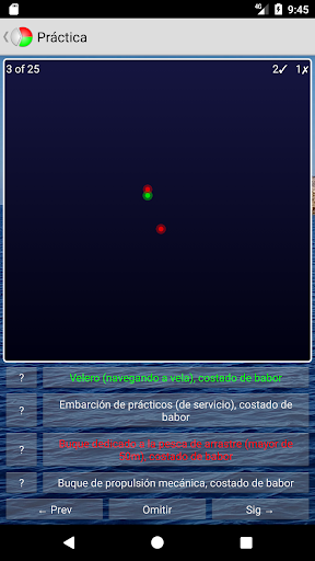 El aprendizaje en esta app se desarrolla en tres fases. En la primera, "estudio", se le puede echar un vistazo a los diferentes buques, de manera que en cada uno de ellos se podrán ver sus luces, tanto en vista superior como lateral. Una peculiaridad de la app es la posibilidad de rotar las embarcaciones deslizando sobre la pantalla, permitiendo su visión desde todos los ángulos. En la segunda fase, "práctica", se presentan los buques de manera aleatoria desde un cierto ángulo, en una vista lateral. Habrá que elegir entre cuatro posibles opciones. Es posible hacer acertar de varias maneras: preguntando la respuesta correcta, rotando la vista o regresando a otros buques. La fase final es la de "examen" En este caso no existe posibilidad de hacer trampas. Se presentan las embarcaciones de forma aleatoria bajo cualquier ángulo, una por una y de manera cronometrada. Una vez terminado el examen, se recibe un informe, junto con la posibilidad de revisar las respuestas.