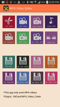 Video Editor is Simple application to edit short videos. Available Features. - Cut Videos two Different times. - Joint two Videos - Add watermark for your videos - Mix Mp3 and Video.