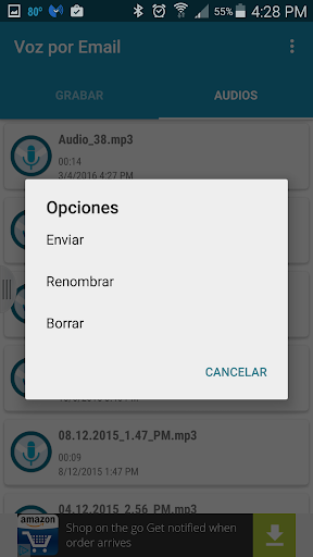 Esta aplicación permite enviar mensajes de audio de pequeño tamaño mediante correos electrónicos, mensajes SMS, WhatsApp, Bluetooth, Wi-Fi Direct, etc. Es muy sencilla de utilizar y útil para lugares donde el costo de llamadas convencionales es elevado lo cual hace más barato y sencillo enviar mensajes de voz. Esta app es muy popular en Cuba (país) entre los usuarios del portal Nauta debido a que las llamadas regulares por teléfono resultan muy caras.