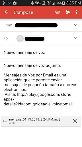 Los mensajes de voz se envían altamente comprimidos para que tengan el menor tamaño posible sin perder en claridad del mensaje.