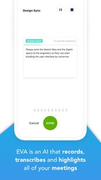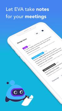 Use EVA in person with this mobile app, or add EVA to conference calls or direct phone calls. With EVA in your meetings, you can focus on the conversation and feel confident that highlights and minutes will be captured and can be pushed to wherever you and your team work. With Voicea you have better focus in meetings and the ability to move quickly, follow-up, and “get more stuff done”.