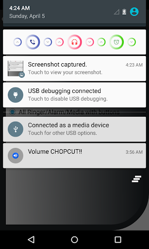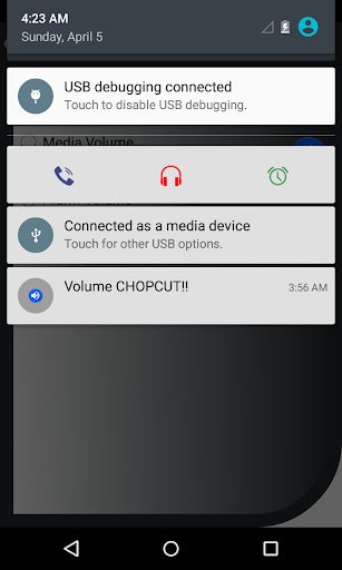 -Extended Notification: Creates another notification with 3 buttons UP/DOWN/MUTE to modify the system volume.