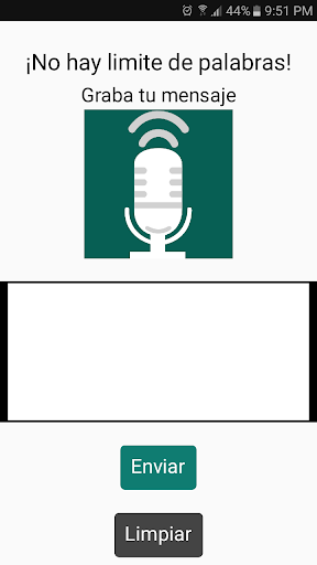 Esta App te permitirá grabar un mensaje con tu voz y te permitira enviarlo como texto al contacto que elijas. Es compatible con Whatsapp, facebook, etc.