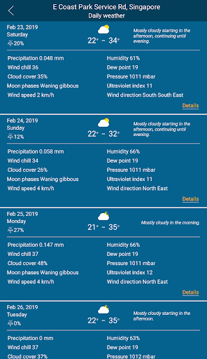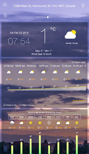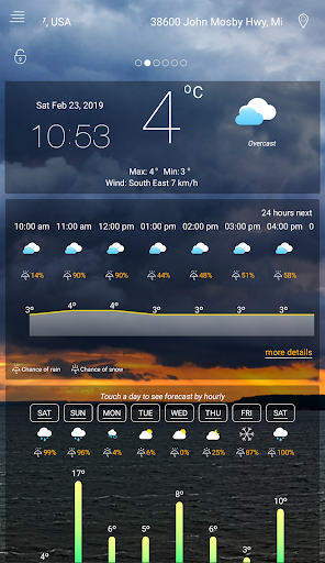 The app give you a very simple user interface, easy to see all weather update info by a touch.