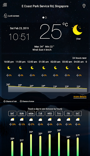 - 1 day, 10 days future forecast and hourly weather forecast.