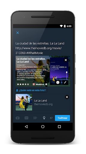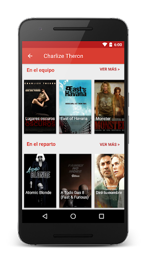 Para los idiomas no traducidos, WhatMovie - Movie information se mostrará en inglés y la información de la película y de los actores en el idioma de tu dispositivo.