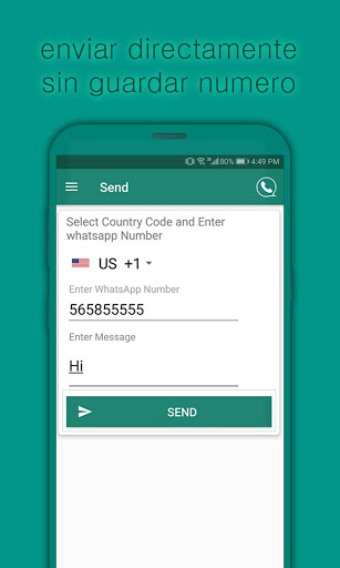 Esta función de ayuda de chat le permite enviar mensajes sin guardar contactos a su lista de teléfonos. Simplemente, marque el número con un código de país y luego envíe presionando Enviar.
