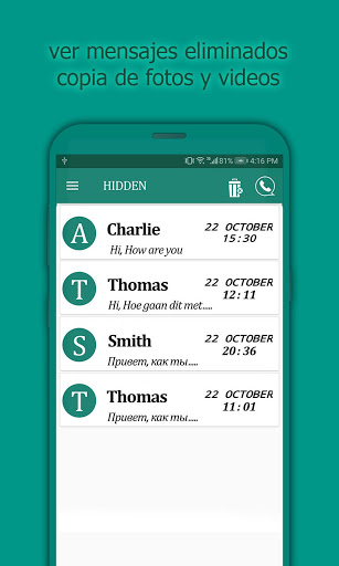 Cada vez que ve mensajes, hay un grueso azul que indica la piel que se vio por última vez. Nuestra función de mensajes ocultos le permite superar pistas ocultas de chat secreto. Eres capaz de abrir los mensajes ocultos sin previo aviso. Este truco de WhatsApp permite enmascarar el chat, que es otro hacks para WhatsApp en esta aplicación.