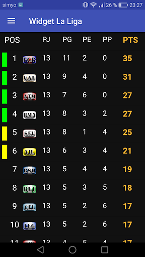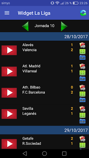 Verás el resultado de los partidos de tus equipos favoritos (Barcelona, Real Madrid, Atletico de Madrid, Sevilla, Granada, Alavés, Espanyol, Betis, Eibar, Real Sociedad, Athletic Bilbao, Celta, Levante, Osasuna, Getafe, Valencia, Leganés, Mallorca, Valladolid, Villarreal), añade tanto widgets como quieras, y para estar al día de la mejor liga del mundo prueba con la aplicación Widget La Liga.