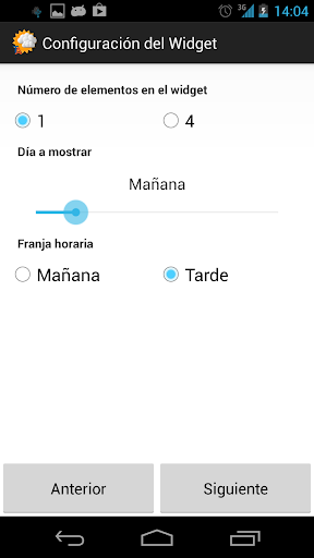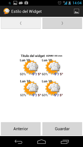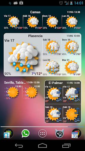 Podrás crear widgets de predicción meteorológica basada en tu ubicación o en tus localidades o playas favoritas. También pueden crearse widgets con datos de las estaciones meteorológicas de la red de la Agencia Estatal de Meteorología.