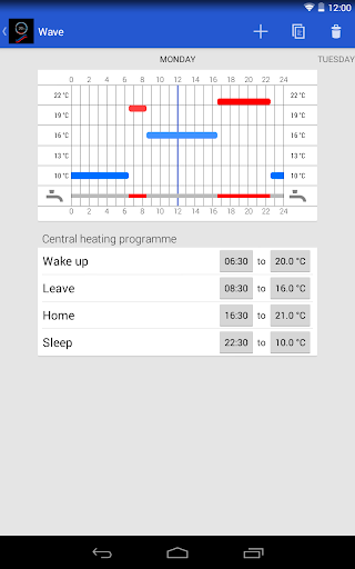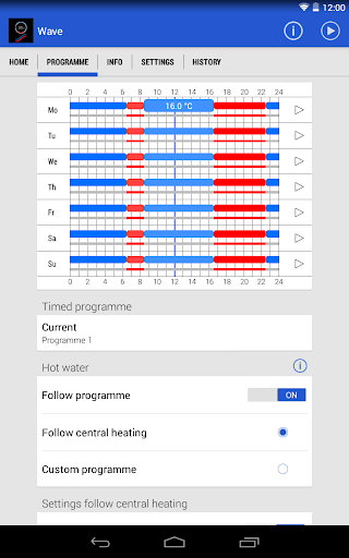 • A diferencia de la mayoría de los otros controles de calefacción inteligente, el Wave también puede programar los ajustes de agua caliente, proporcionando ahorros de energía y confort.