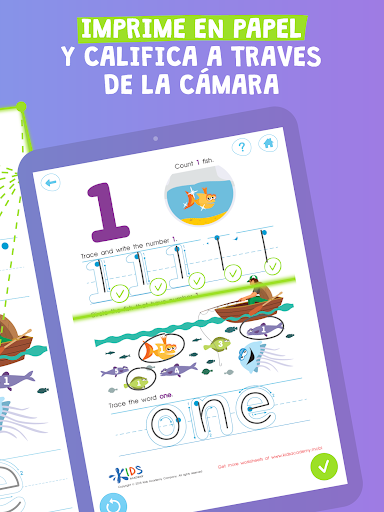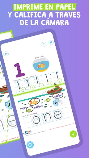 ¡Disfruta de una combinación perfecta de aprendizaje en una pantalla y en el papel! Tus hijos se mantendrán ocupados practicando escritura y otras habilidades esenciales de preescolar en hojas de trabajo interactivas. Elije entre una gran cantidad de hojas de trabajo, completa tareas utilizando sugerencias fáciles de seguir y deje que el dispositivo evalúe tus resultados en unos pocos segundos.