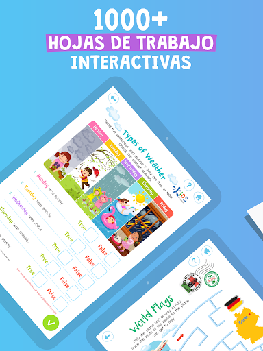 ⭐Más de 1000 hojas de trabajo para completar en una pantalla o en el papel diseñadas por expertos y actualizadas cada semana- Autocomprobación inmediata con la calificación individual