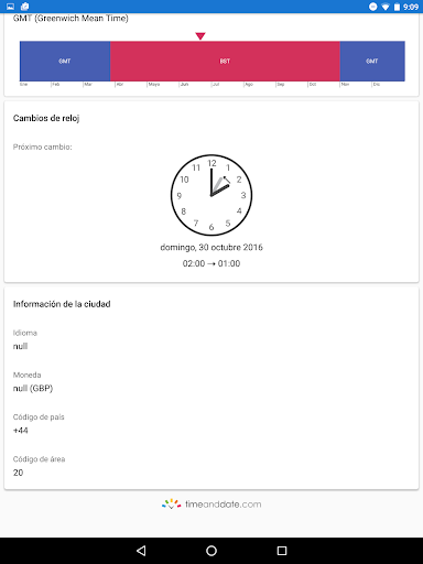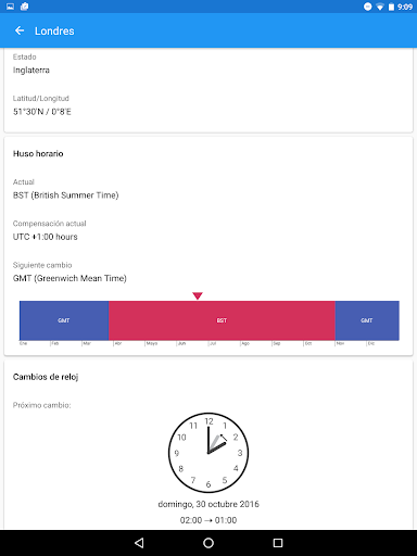 - Información actualizada de los husos horarios y cambios de horarios de verano (DST).