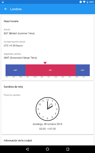 Permanece enterado de la hora local de más de 5000 ciudades de todo el mundo. Un equipo profesional de investigadores continuamente actualiza la información que se muestra en la app. También incluye alarmas y widgets.