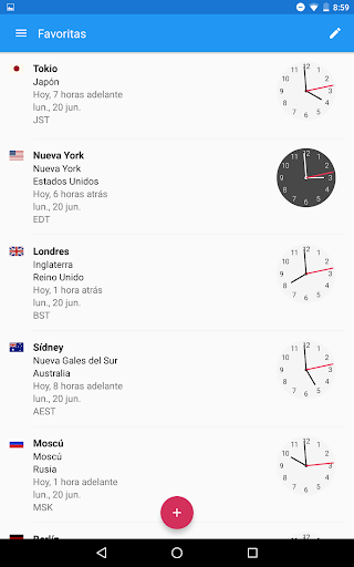 - Crea tu propio reloj mundial añadiendo ciudades a tus favoritos.