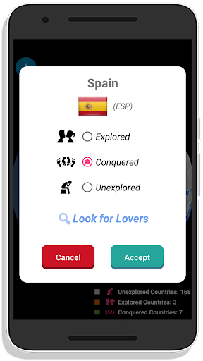 podrás olvidar las nacionalidades que has conquistado (amorosamente hablando) pero los llevarás siempre en tu móvil por si quieres recordarlo en algún momento.