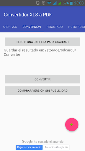 Despues, en la página de “conversión” haga clic en “Convertir”.