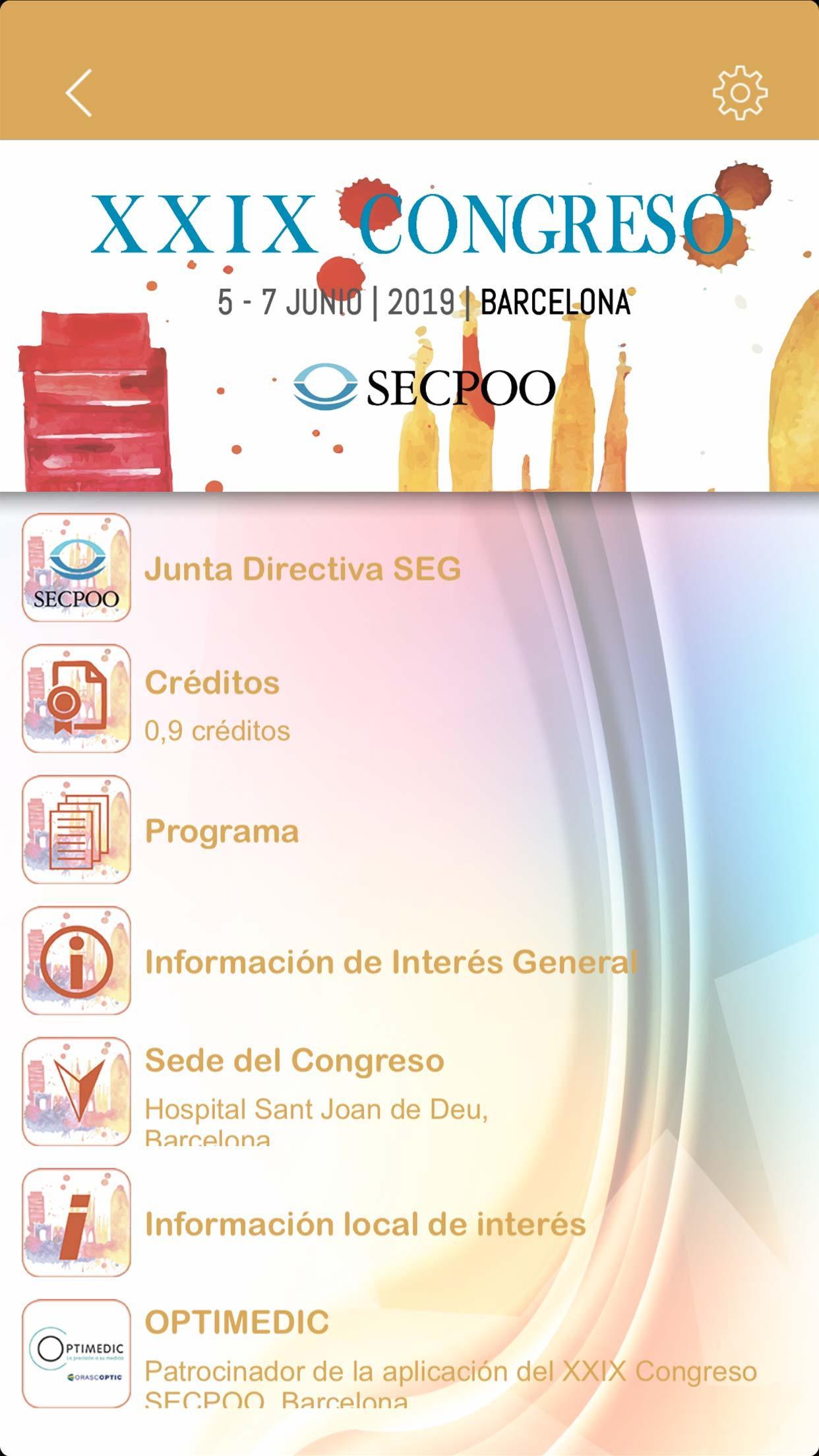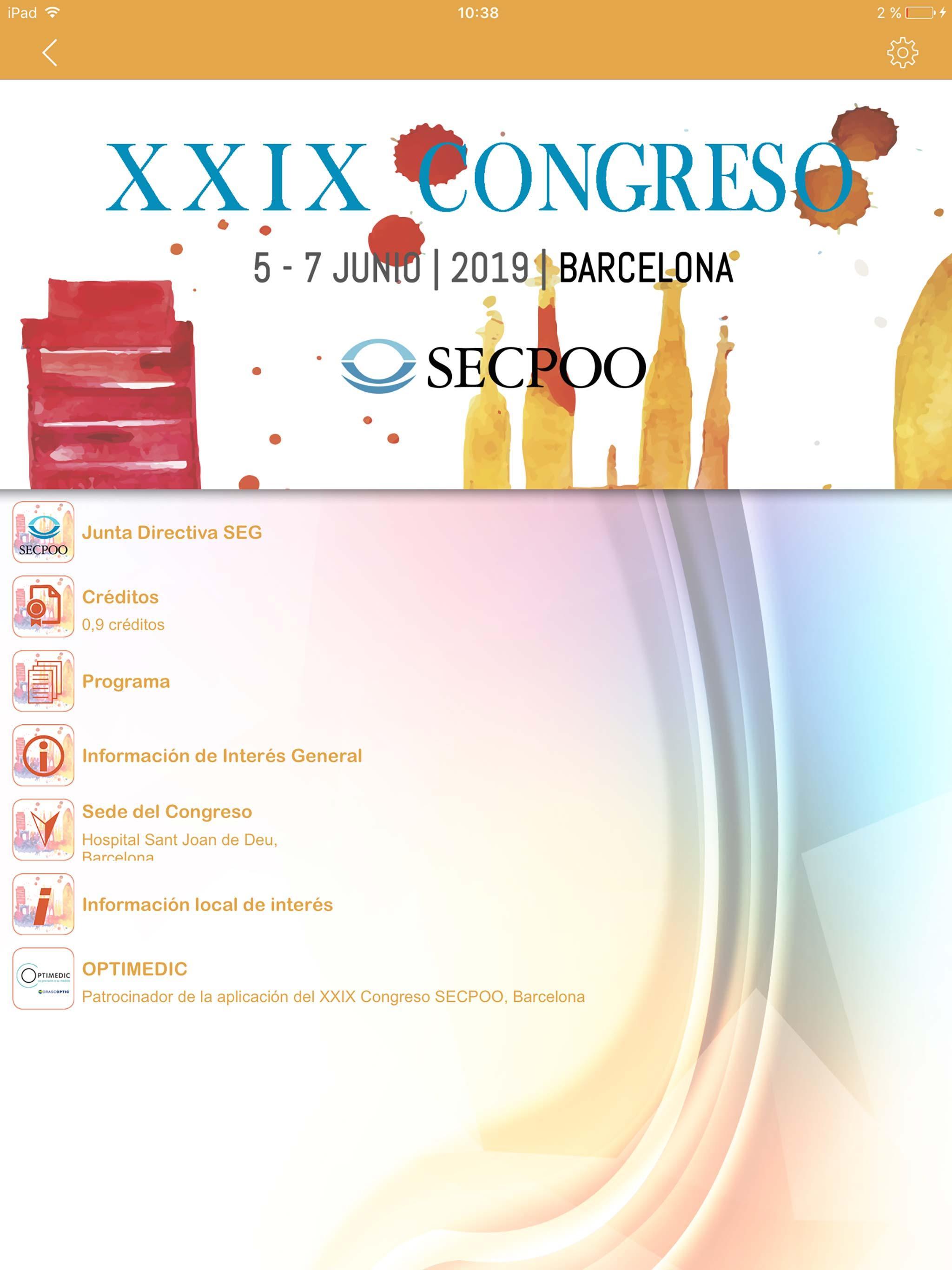 Aplicación oficial del XXIX Congreso de la Sociedad Española de Cirugía Plástica Ocular y Orbitaria (SECPOO), que se celebrará en el Hospital Sant Joan de Deu,