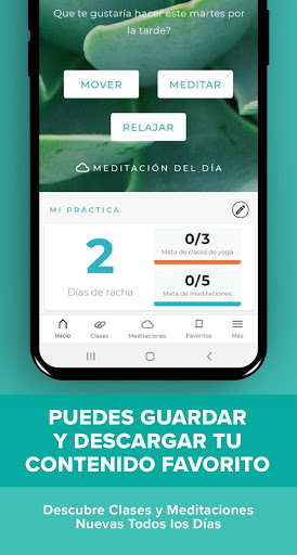 Descarga tantas clases y cursos como quieras para que puedas mantener tu práctica donde sea que te encuentres. Puedes escuchar una meditación guiada durante un vuelo, tomar una clase de yoga en tu habitación de hotel, o practicar en cualquier lugar que tenga un acceso a Internet irregular.
