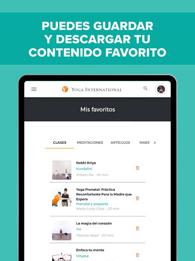 * Guarda tus prácticas favoritas para más tarde y sigue tu progreso