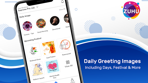 Using 'ZUHU - Greeting Card Maker' app Easily promote your business with your business logo and contact information by telling your story on social media.
