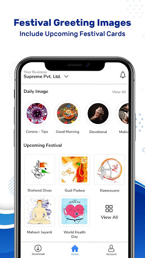 personalized greetings with your company logo, details and product/service information will helps you to promote your business along with festival wishes and greetings via WhatsApp, Facebook, Instagram, twitter and many other social media.