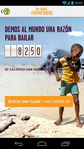 Participa en The Great Calorie Drive™, una iniciativa social mundial para luchar contra el hambre en el mundo. Elimina tus calorías en una clase de Zumba® y dónalas cuando te registres con la aplicación de Zumba Fitness®. Averigua más en www.greatcaloriedrive.com/es.