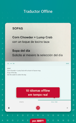 - Traducción en tiempo real directamente en la pantalla de la cámara, sin necesidad de hacer fotos. Traducción online a más de 100 idiomas (textos completos) y traducción sin conexión a 10 idiomas (palabra por palabra).
