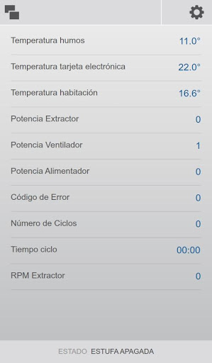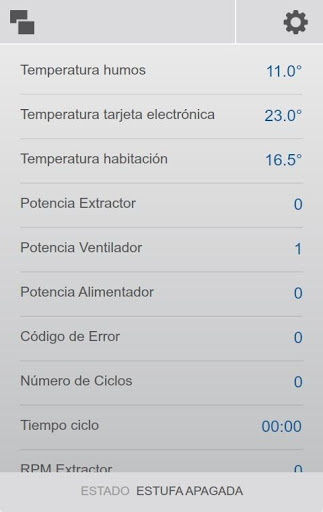 Tener acceso en tiempo real a varios parámetros de operación, como temperatura de humos, temperatura ambiente, estado de ventilador ambiente y el alimentador de pellets, etc.