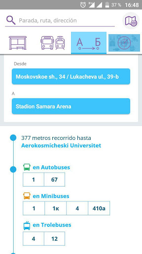 Se utiliza el servicio de analisis del operador de transporte de Samara http://www.tosamara.ru/api/