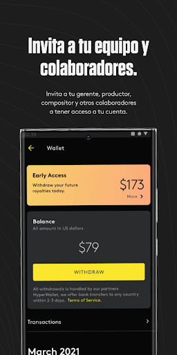 Artistas de todo el mundo usan Amuse para distribuir su música a cientos de tiendas de música digitales de todo el mundo, haciendo que sus fans descubran y compren su música. Estés donde estés, la aplicación de Amuse te permite subir canciones y álbumes en unos minutos. Y solo necesitarás un teléfono y conexión a internet.