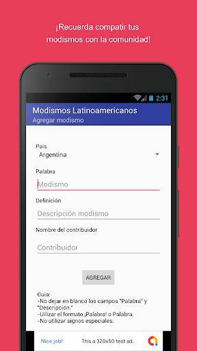 Modismos latinoamericanos es una aplicación que almacena diferentes modismos de los países latinoamericanos con su significado, así que podrás aprender sobre expresiones y palabras exóticas de todos los países latinoamericanos.