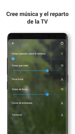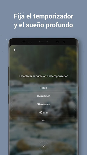 ⏱ 👍🏻 Si quieres quedarte dormido con las olas del océano o el murmullo de un arroyo, la aplicación tiene un temporizador de sueño. El temporizador desactivará los sonidos del sueño a la hora que tú establezcas. Puedes dormir en paz sin tener que preocuparte por el funcionamiento de la aplicación.