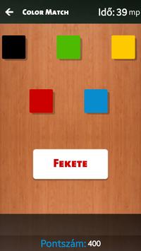 A képernyőn megjelenik egy kártya egy szín nevével. Ennek a szónak a színét kell kiválasztanod a felsorolt színekből.