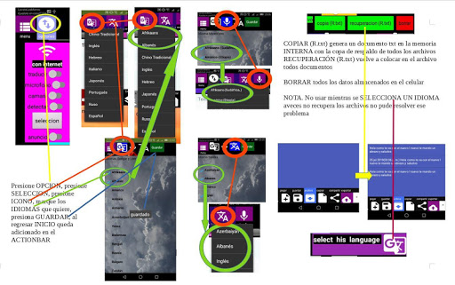 1 SELECCIONE SU IDIOMA. se puede elegir el idioma nativo del usuario, algunos idiomas da error, mientras intentento resolver, coloque el boton rojo Borrar, esto borra todo lo almacenado