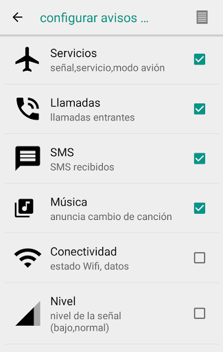 Este servicio captura las notificaciones del teléfono y utiliza la herramienta de texto a voz (TTS TextToSpeech) para informarlas en forma hablada.(breve o detallada)
