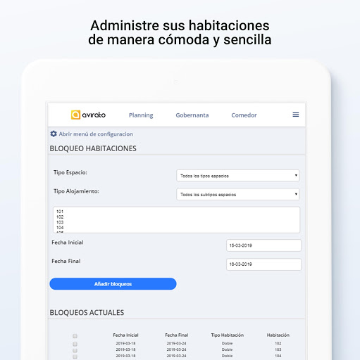 Combine el aspecto,funcionamiento y la calidad que ya conoce de Avirato PMS con una experiencia táctil diseñada para móvil y tablet.