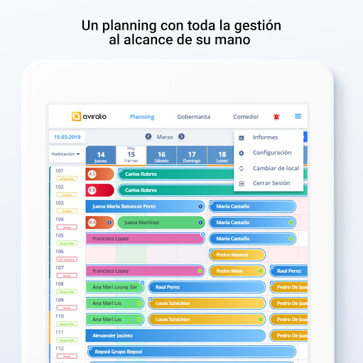 La App de Avirato PMS se ha construido en torno a la seguridad y la sencillez de uso. Puede crear distintos usuarios desde el PMS, (que la podrán usar de manera simultánea) y restringir accesos cuando y a quién necesite.
