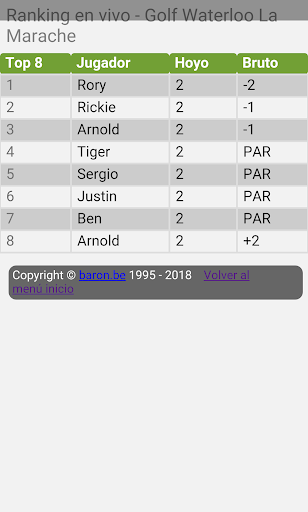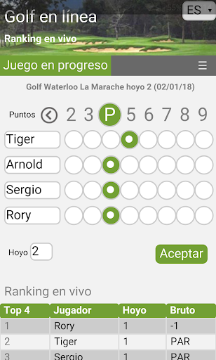 2) Vista en vivo de su clasificación durante un torneo de golf