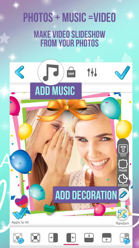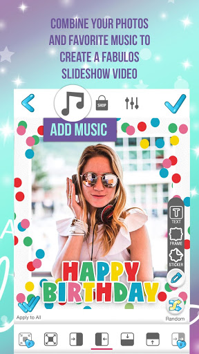 para el mejor amigo, novio, novia o un querido miembro de la familia. Crea tarjetas de cumpleaños, scriba en tarjetas, añada marcos a las fotos, añada los filtros y cree un montaje hermoso de la foto y el vídeo de la diapositiva de las imágenes con música. Aplicacion para desear feliz cumpleaños creador de videos con fotos y musica y efectos para hacer fotos de cumpleaños slideshow con música. Los video felicitacion cumpleaños musicales gratis y videos de feliz cumpleaños para enviar. El fabricante de video foto musica y feliz cumpleaños video maker para hacer un video de cumpleaños feliz gratis!