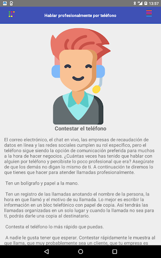 La interfaz de usuario de la aplicación es intuitiva y fácil de navegar. Los consejos se presentan de manera clara y concisa, lo que facilita su comprensión y aplicación. Puede acceder a la aplicación en cualquier lugar, en cualquier momento, y consultarla rápidamente cuando necesite un repaso sobre cómo hacer una llamada de negocios exitosa.