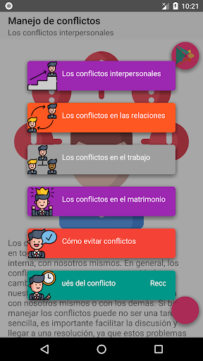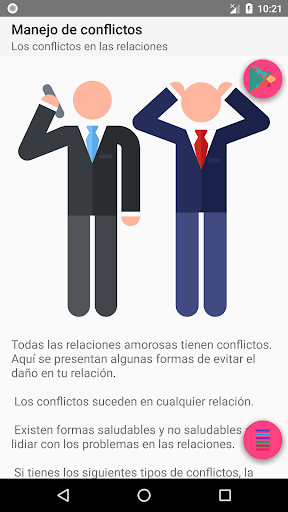 Los conflictos son inevitables y se producen en todas las relaciones, así como de manera interna, con nosotros mismos. En general, los conflictos representan una oportunidad para cambiar y madurar, así como para mejorar nuestra comprensión y comunicación, ya sea con nosotros mismos o con los demás.Si bien manejar los conflictos puede no ser una tarea sencilla, es importante facilitar la discusión y llegar a una resolución, ya que estos problemas son parte de nuestra vida cotidiana.