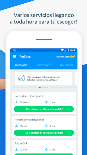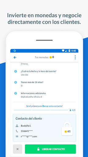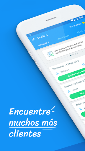 Con GetNinjas encuentras nuevos clientes directamente desde tu celular. Te registras, eliges el mejor paquete de monedas dentro de la App ¡Y tienes acceso a las solicitudes de varios clientes interesados en contratar servicios con profesionales calificados! Lo demás depende de ti: Contactar a los clientes, enviar tus cotizaciones, negociar y cerrar la contratación de tus servicios.