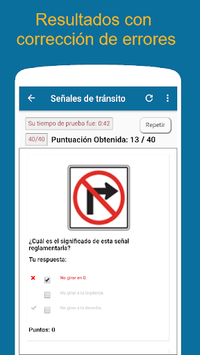 Permite auto evaluarse al final de cada examen. El aplicativo muestra el puntaje obtenido de acuerdo a las respuestas correctas, además podrá revisar sus respuestas correctas y erróneas con la finalidad de mejorar su conocimiento.