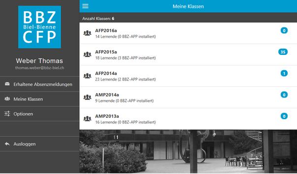 Die offizielle BBZ-APP des Berufsbildungszentrum BBZ Biel-Bienne erlaubt Lernenden die einfache Abmeldung vom Unterricht. Die Mitteilung wird an die betreffenden Lehrkräfte übermittelt.
